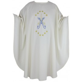 Chasuble avec son étole en polyester laine .Le galon est cousu avec un médaillon brodé au centre sur le dos et le devant .
