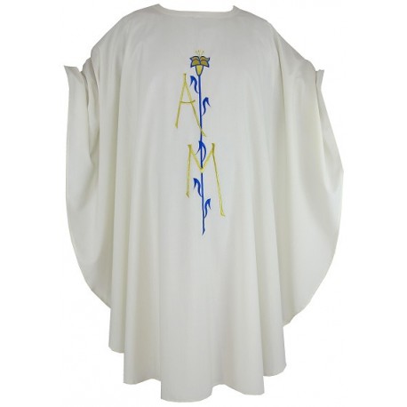 Chasuble rehaussée d'une broderie en fils or et argent, laine et polyester
